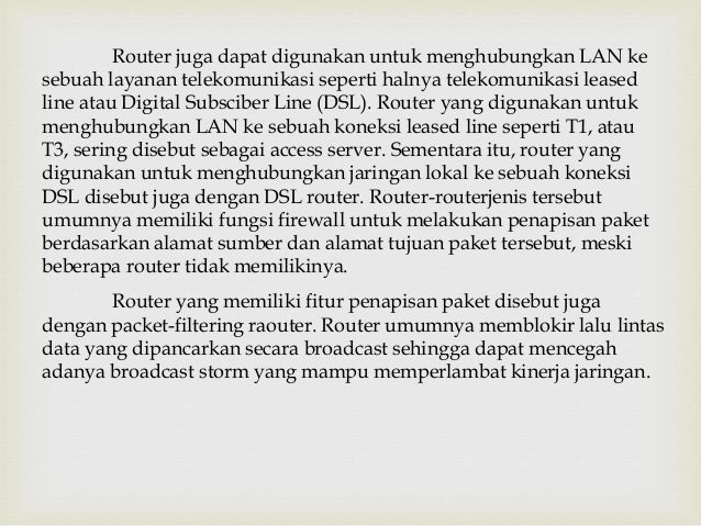 dan juga mempermudah manajemennya. Router juga kadang digunakan untuk