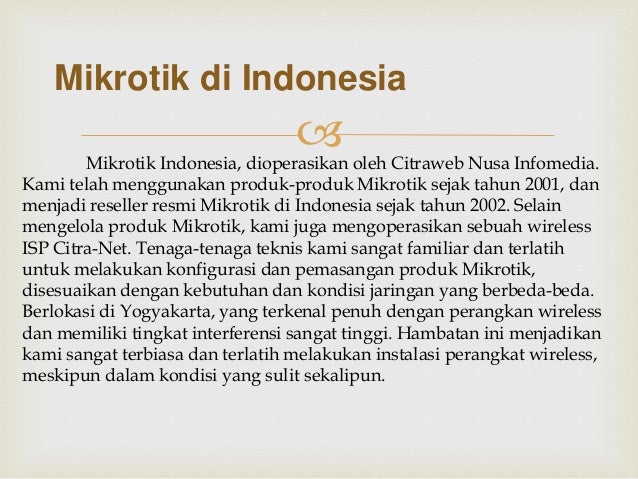 Mikrotik Indonesia, dioperasikan oleh Citraweb Nusa Infomedia. Kami telah